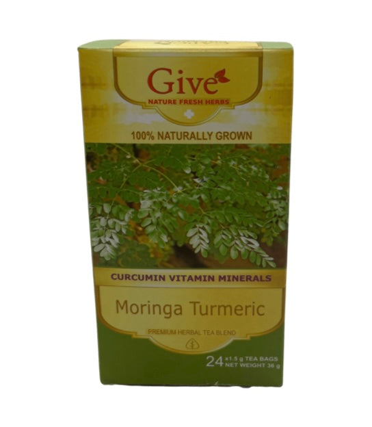 Moringa Turmeric: This product is 100% leaves of Moringa Olifera and root of Curcuma longa (Turmeric).